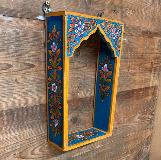 This item is sold out, please contact us for alternative products.Indian painted decorative single arch temple shelf.