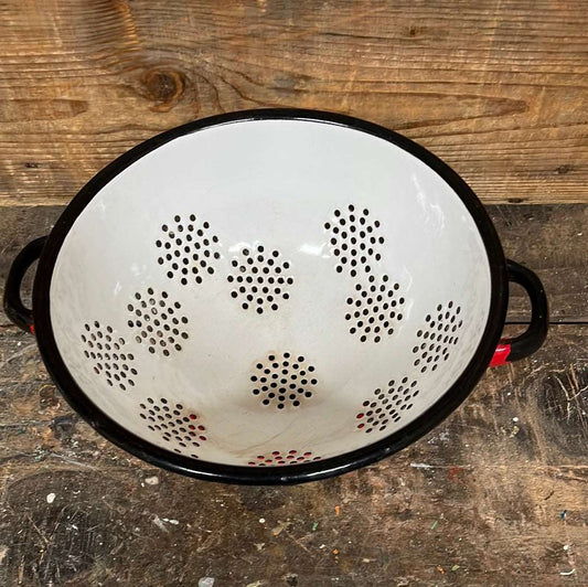 This item is sold out, please contact us for alternative products.Enamelled metal red and white cullender.
