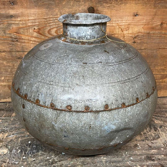 This item is sold out, please contact us for alternative products.Vintage Indian decorative reclaimed metal water pot.